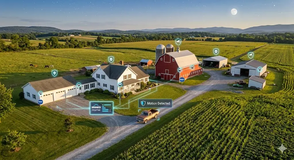 Brinks has been quietly building a strong rural presence, particularly among farmsteads and large-property owners who need sensors spread across significant square footage.