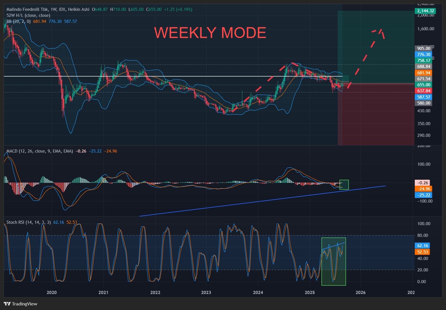 - Grafik Bulanan (Monthly): Dalam jangka panjang, struktur harganya terlihat kokoh dan bertahan di atas rata-rata pergerakan utamanya, menandakan ruang untuk naik lebih jauh masih terbuka lebar.