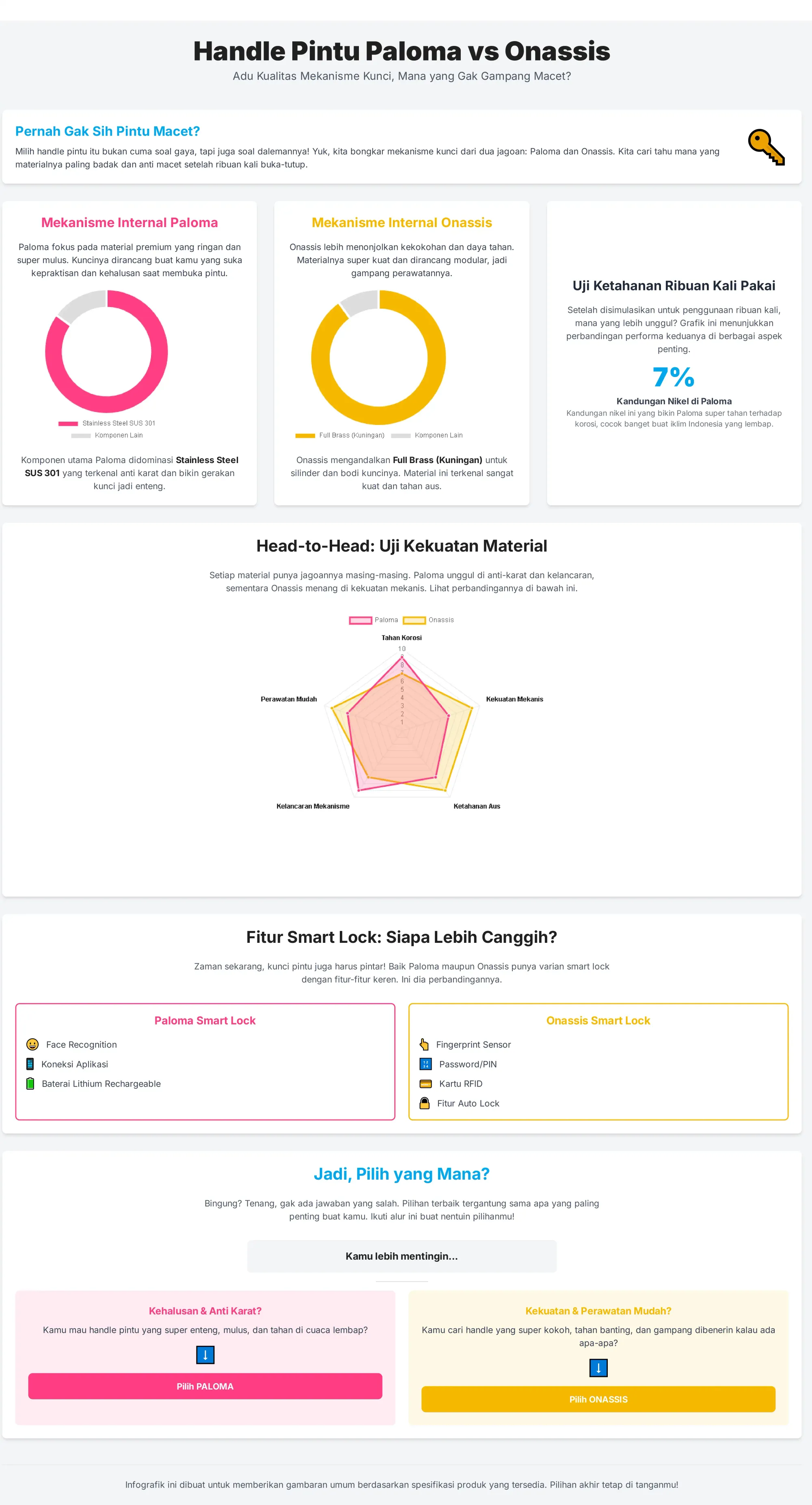 Nah, di artikel ini, kita nggak cuma lihat dari luar. Kita bakal jadi 'detektif hardware', membongkar tuntas jeroan mekanisme kunci keduanya. Kita akan adu kualitas material per, silinder, sampai ke level paling detail untuk menjawab pertanyaan keramat: antara handle pintu Paloma vs Onassis, mana yang jagoannya anti macet untuk pemakaian jangka panjang?
