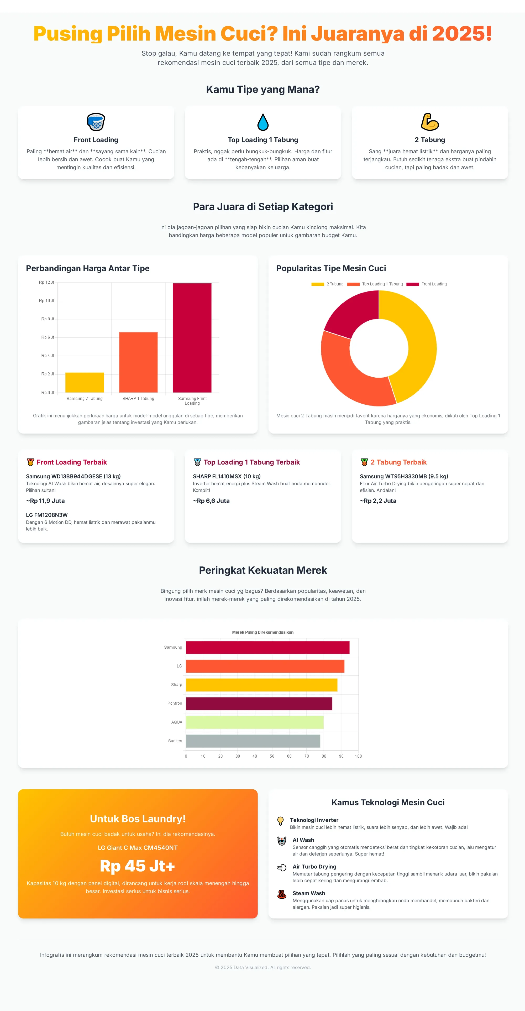 Kita akan bedah semuanya, mulai dari tipe-tipe mesin cuci, fitur apa saja yang penting, sampai daftar rekomendasi mesin cuci terbaik 2025 yang paling worth it. Siap? Yuk, kita mulai petualangannya!